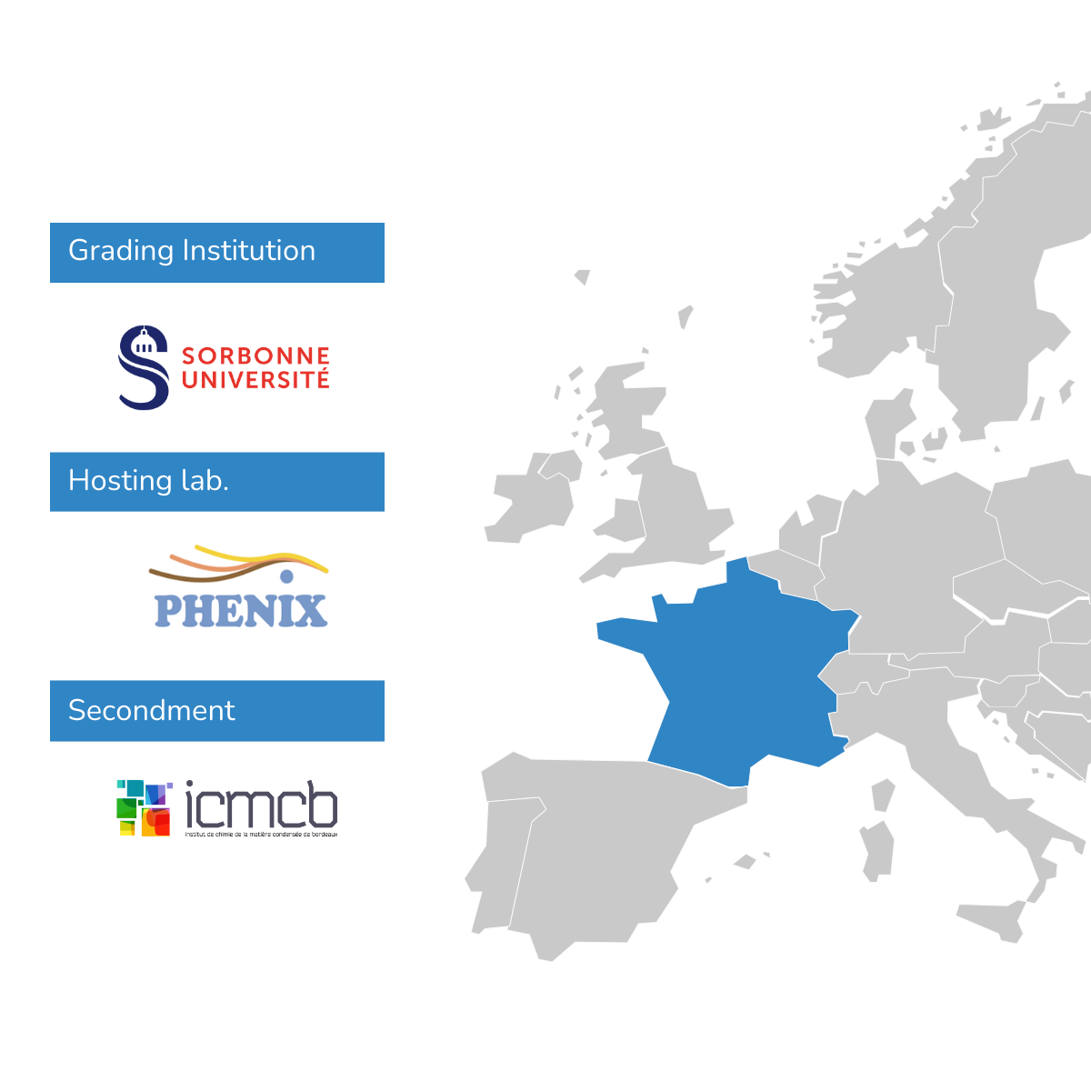 Expected mobility: The two partners (PHENIX and ICMCB) have agreed on the following mobility for the PhD student: